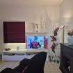 Soggiorno confortevole con divano letto matrimoniale, perfetto per ospiti o per rilassarsi dopo una giornata al mare.