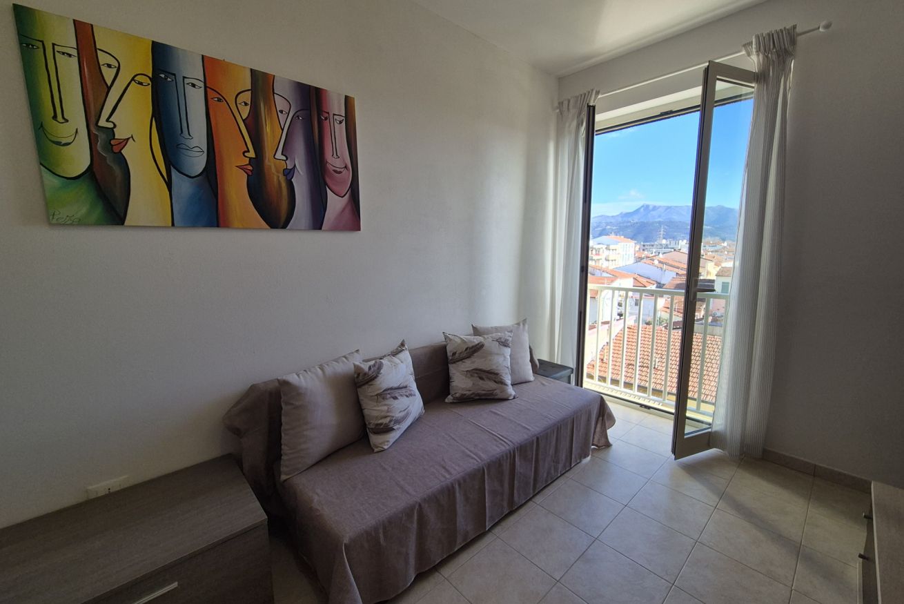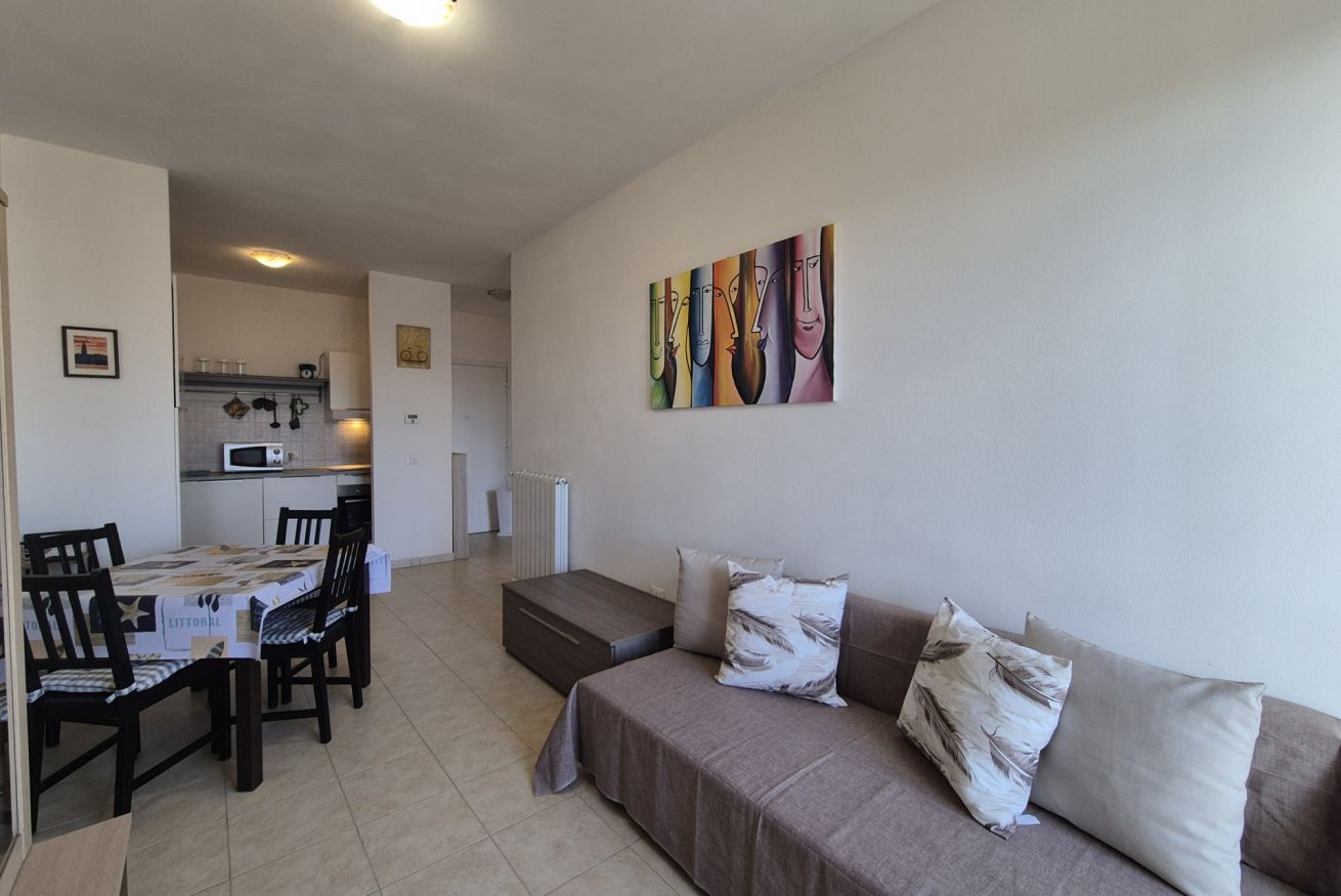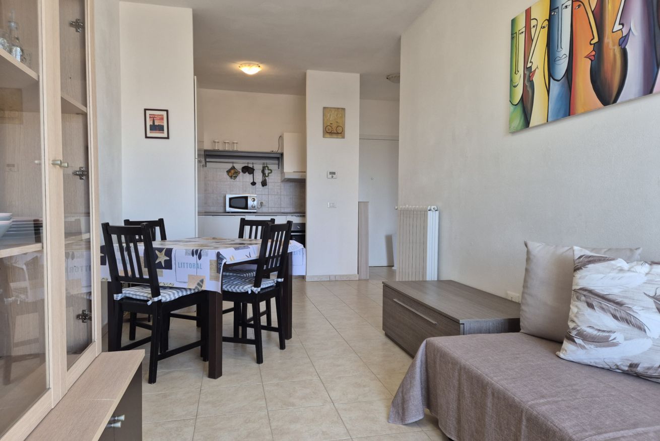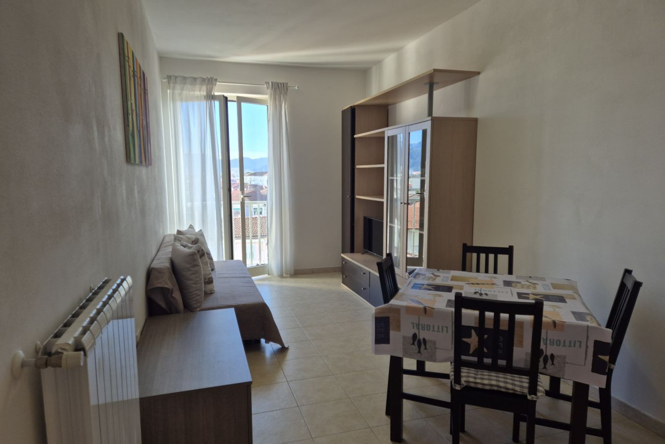 Posto al terzo piano con ascensore, l’immobile si compone di un soggiorno luminoso con divano letto a una piazza e mezzo, angolo cottura completamente attrezzato, camera matrimoniale e bagno con doccia. Gli ambienti risultano particolarmente ariosi e godono di una piacevole vista aperta sulle colline della Versilia.