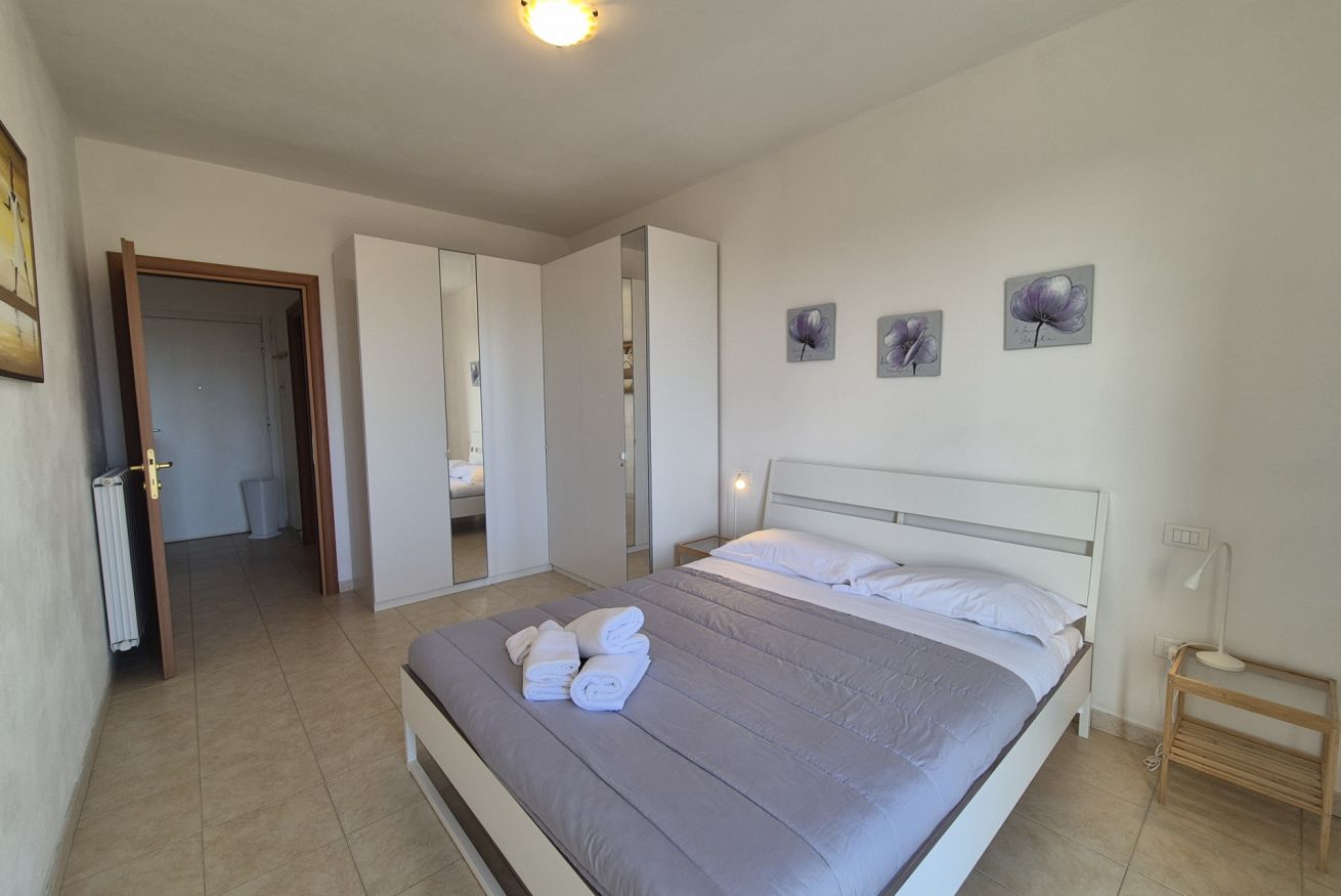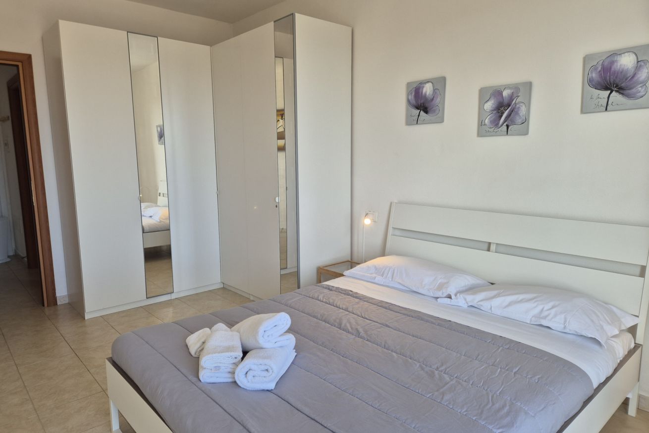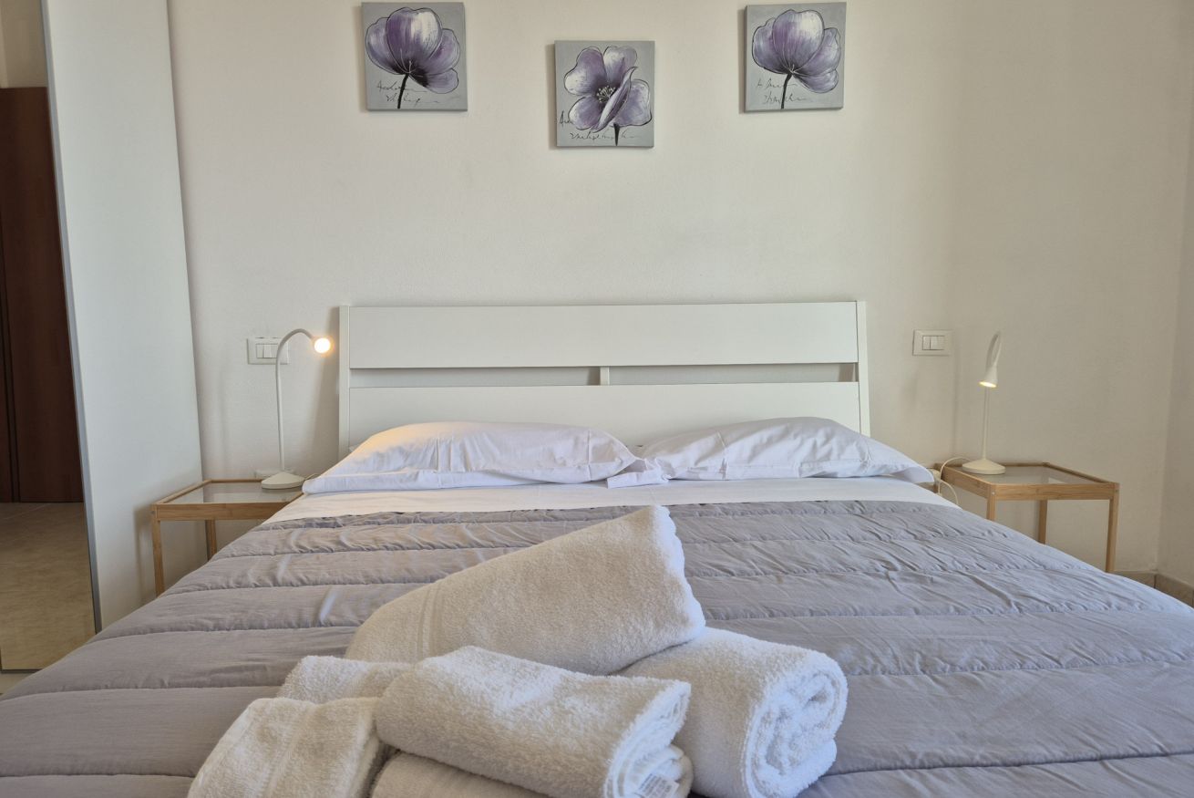 L’appartamento è dotato di aria condizionata per garantire comfort nei mesi estivi, riscaldamento centralizzato per l’inverno, connessione Wi-Fi e televisione. Il condominio dispone di cancello elettrico e di un parcheggio con posti auto liberi non assegnati, soluzione pratica per chi arriva in auto.